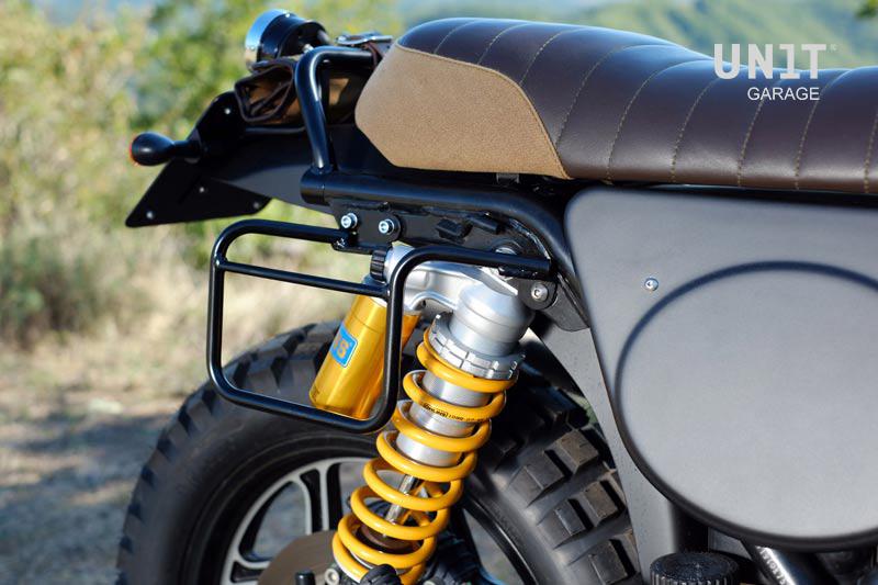 El resultado es fantástico, la visualización en vivo es incluso mejor que en las fotos ... limpio, simple y con accesorios exclusivos: bolsa de lona encerada y cuero con marco de fijación, Ohlins calibrados adecuadamente con mayor longitud, extremo de escape de titanio todo hecho ad- hoc para el K75 y para el K100 . Una serie de accesorios listos para usar, intercambiables y disponibles para comprar por separado, para personalizar y personalizar su K como prefiera.