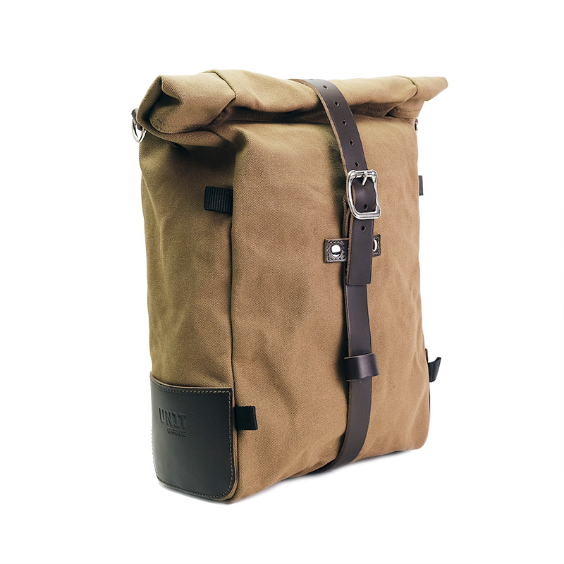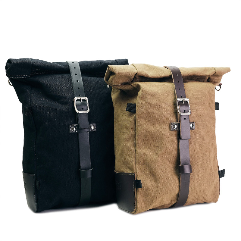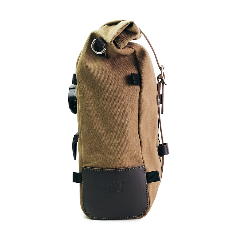 Bolsa lateral pura expandible de 10 a 14 Litros fabricada en Italia en algodón resistente, encerado y de primera calidad.