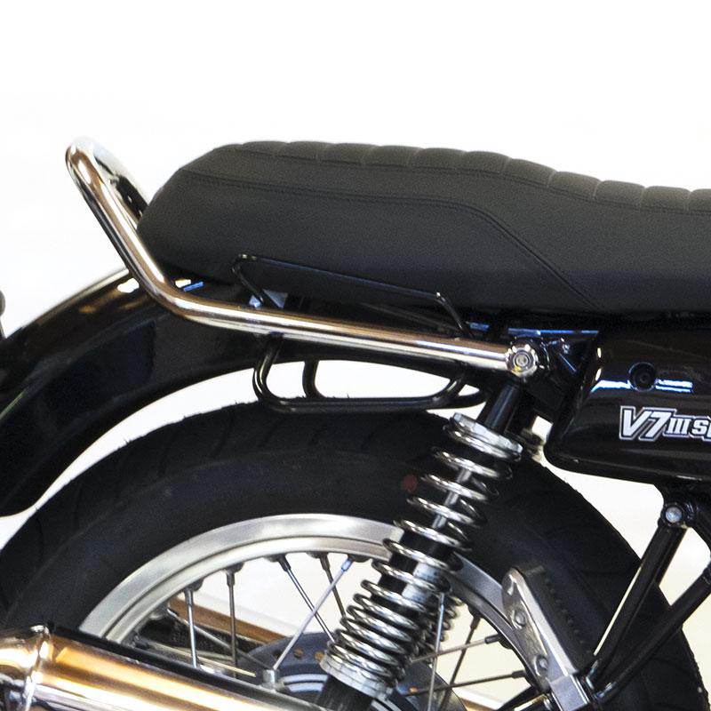 2. Marco Moto Guzzi V7 derecho fabricado en acero tratado con acabado negro mate con epoxi en polvo.