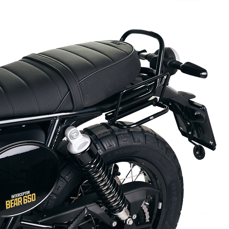 Royal Enfield Bear 650 se integra perfectamente con el resto de la moto. Preparado para acoger nuestro sistema de fijación rápida, bonito y minimalista incluso cuando el bolso no está montado. Se monta fácilmente. Se puede utilizar cómodamente incluso con un pasajero a bordo.