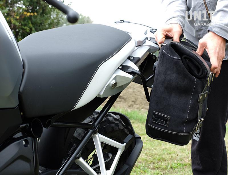 Diseñado en la base R1200GS LC o ADV, se integra perfectamente con el resto de la bicicleta. Listo para alojar nuestro sistema de sujeción rápido, hermoso y mínimo, incluso cuando la bolsa no está montada.