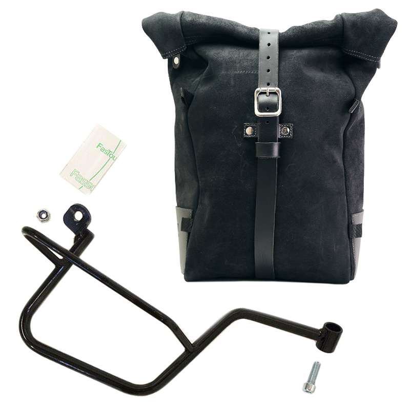 1. Bolso lateral puro ampliable de 10 a 14 Litros fabricado en Italia en resistente piel serraje impermeable de altísima calidad.