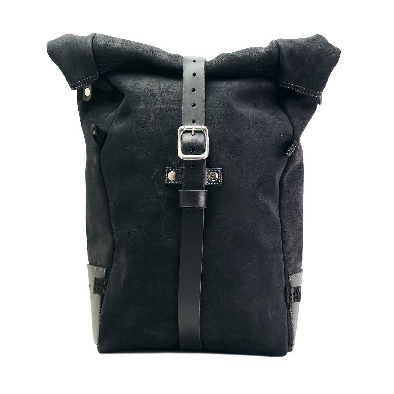 1. Bolso lateral puro ampliable de 10 a 14 Litros fabricado en Italia en resistente piel serraje encerada de altísima calidad.