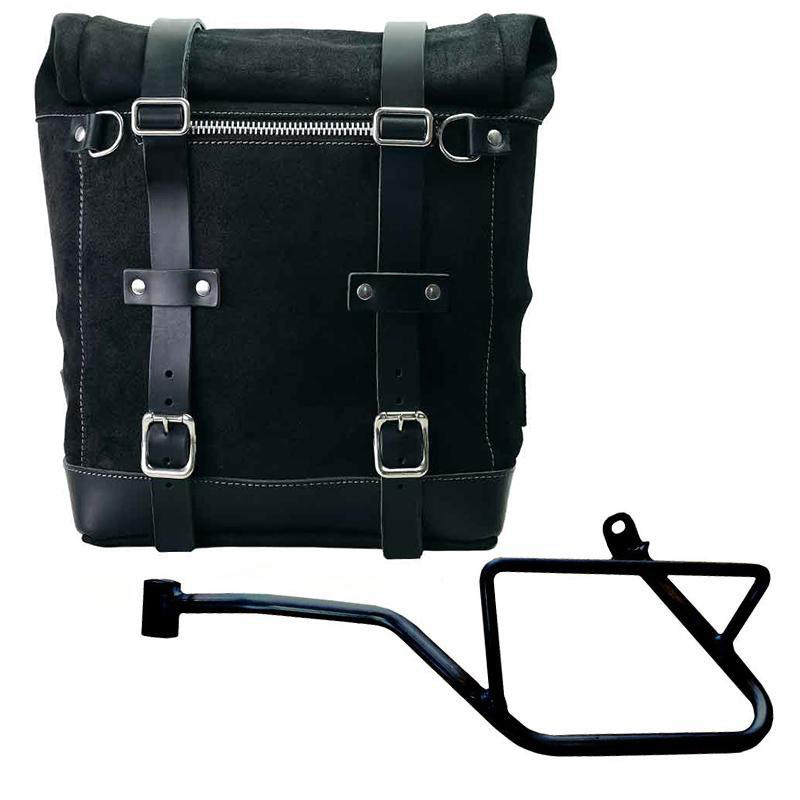 Bolsa lateral Scram extensible de 22 a 30 Litros hecha a mano en Italia en robusta piel serraje impermeable de primera calidad.