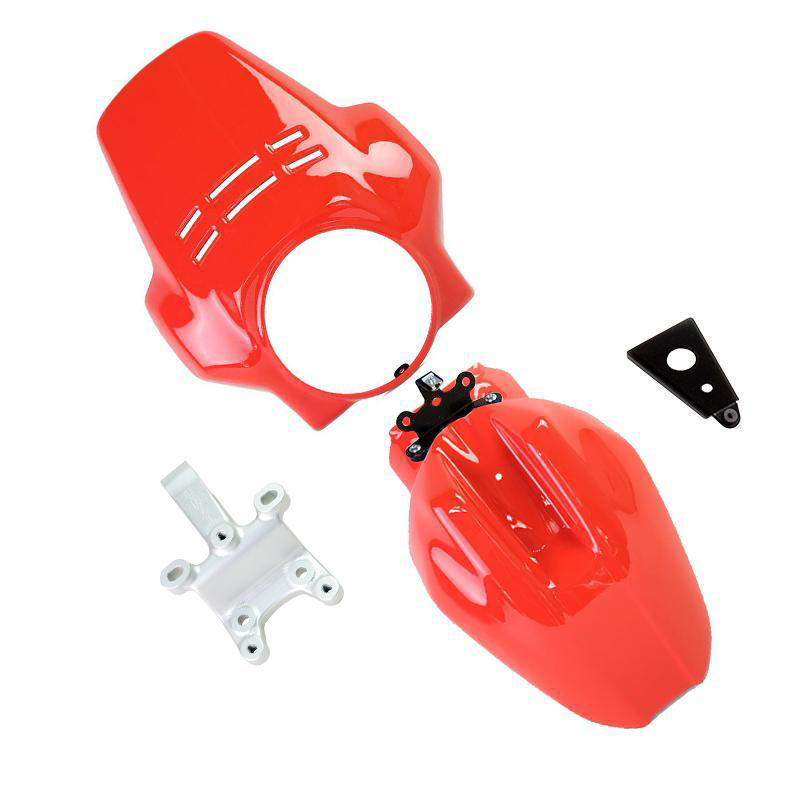 El nineT Scrambler y nineT Pure tienen el faro colocado más bajo que el nineT Urban GS. Con este kit, puede volver a visitar todo el frente, lo que lo hace muy agresivo y al mismo tiempo tiene un carenado y guardabarros superiores. Retoma el aspecto del legendario R80 GS PD adaptado y revisado para la serie nineT. Kit completo con guardabarros delantero y carenado delantero + soporte de faro elevado. Fabricada en ABS con pintura y transparente. Disponible en tres colores: White Light White Urban Gs, Matt Black y Red. Se montan sin ninguna modificación en la bicicleta. Tienen buena protección aerodinámica y se suministran completas con instrucciones, soportes y tornillos para su fijación.