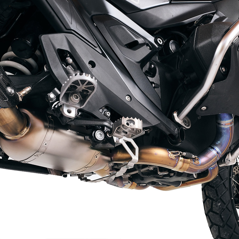 No homologado para uso en carretera, mejora el rendimiento y reduce el peso. Los tubos de mayor diámetro en comparación con el sistema estándar y la eliminación del convertidor catalítico permiten un mejor flujo de gas.