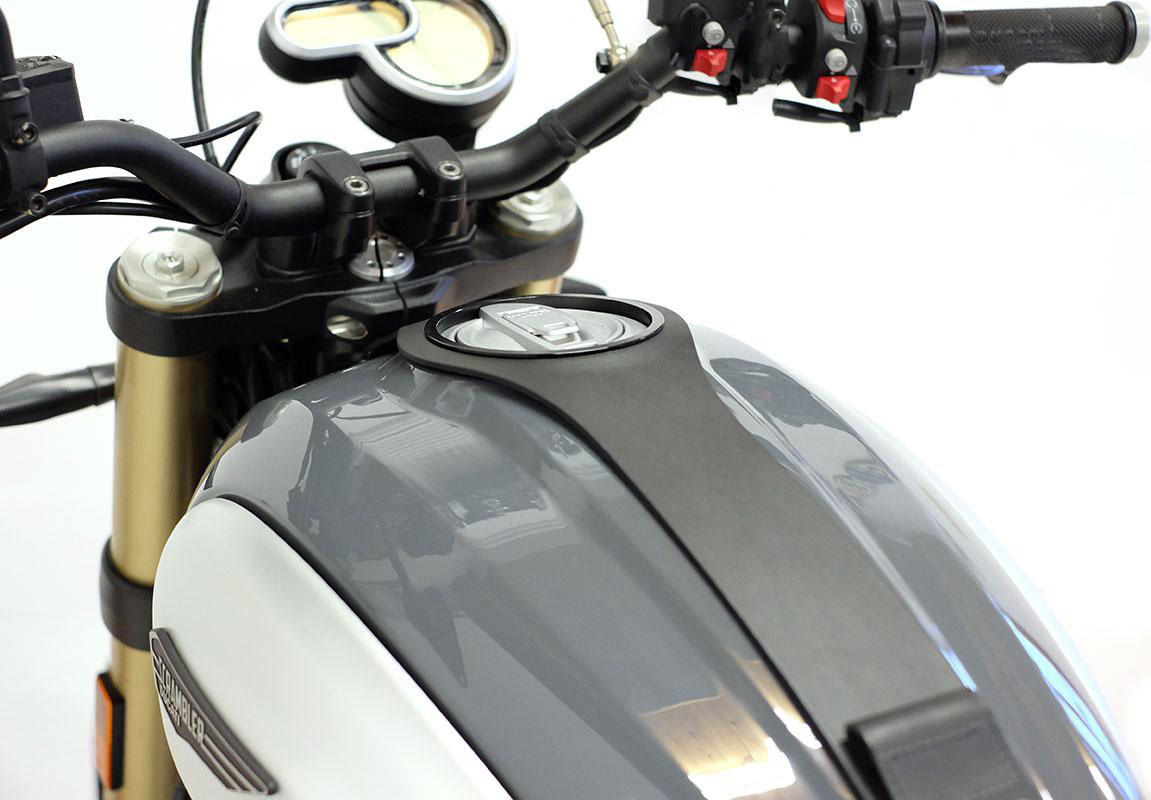 Viene completo con ganchos para el tanque y protección para evitar dañar la pintura original. En la parte trasera, permite la carcasa del estante del tanque y otros accesorios.