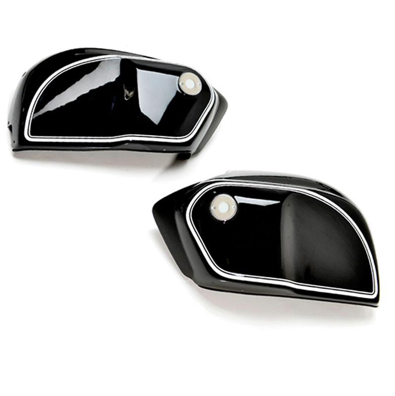 Par de cubiertas de tanque en resina especial y MAT con refuerzos de fibra de carbono, acabado negro AVUS BLACK, con gráficos y protección transparente.