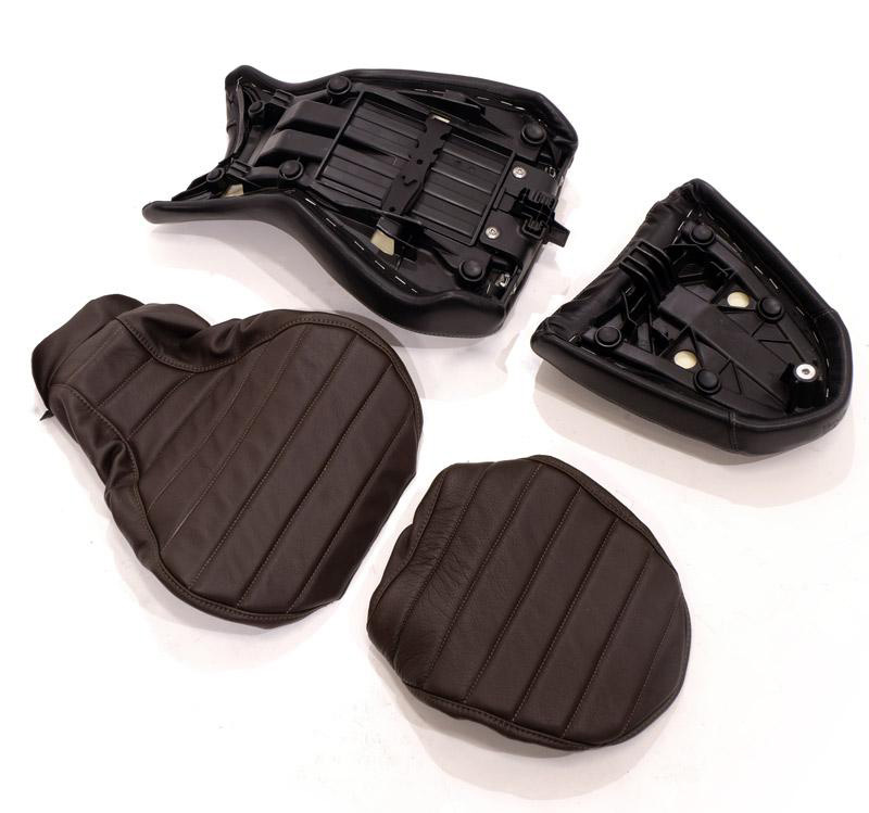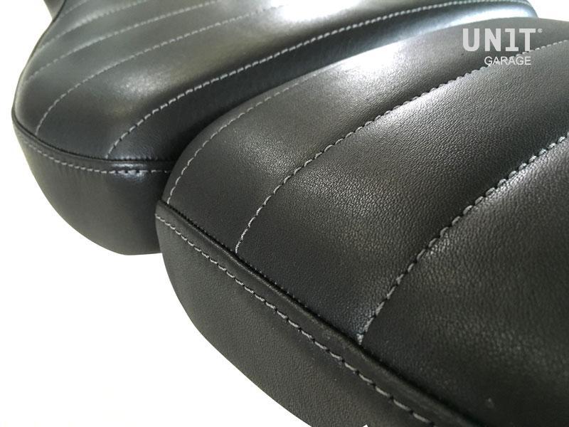 El material del asiento original no hacía justicia al aspecto del nineT y lo sustituimos por algo más "real". Hemos seleccionado las mejores curtidurías y elegido cueros de origen italiano y no tratados con pentaclorofenol. Hecho a mano y cosido con hilo de algodón. El sillín con esta funda es más cómodo gracias a la capa adicional de esponja cosida al cuero. La instalación correcta requiere un poco de habilidad manual, si no le apetece, comuníquese con un tapicero.