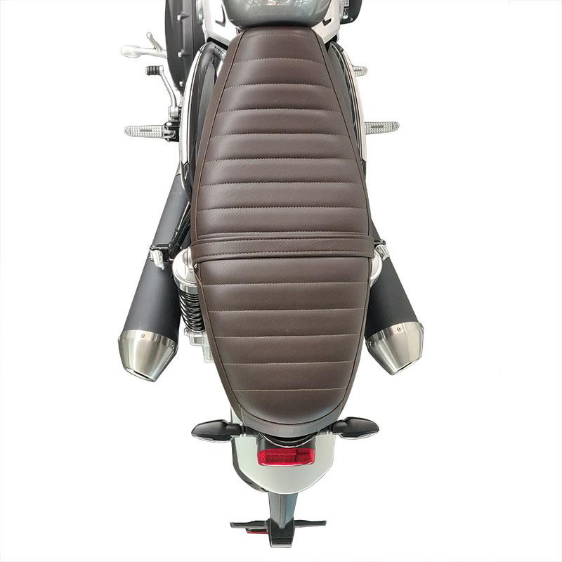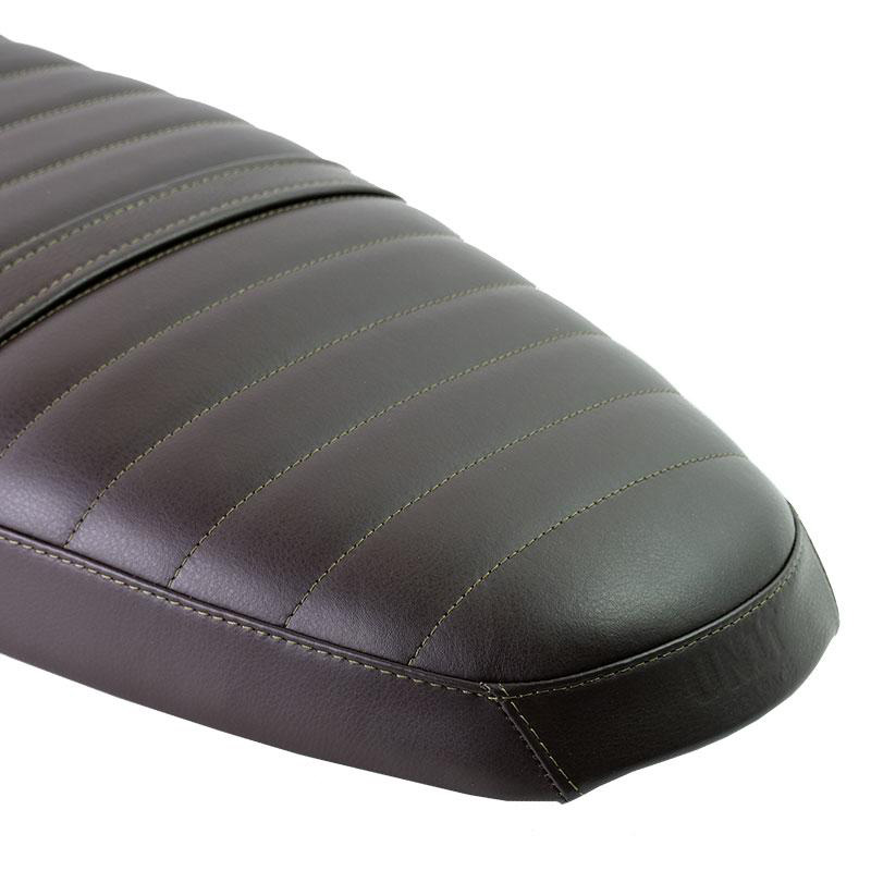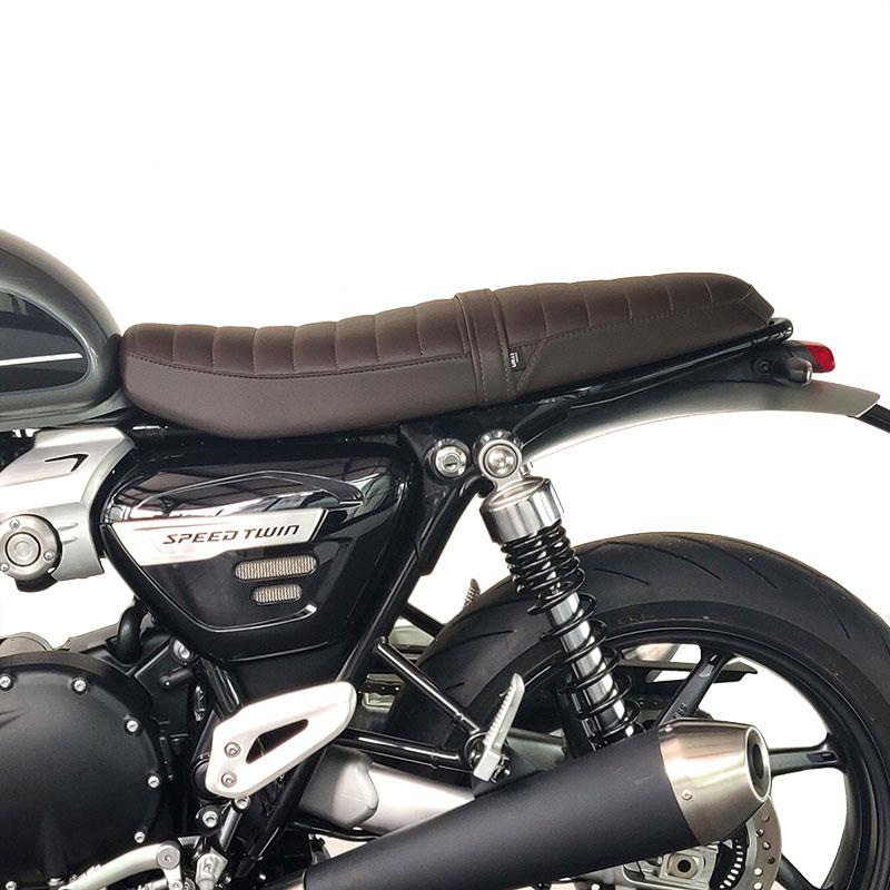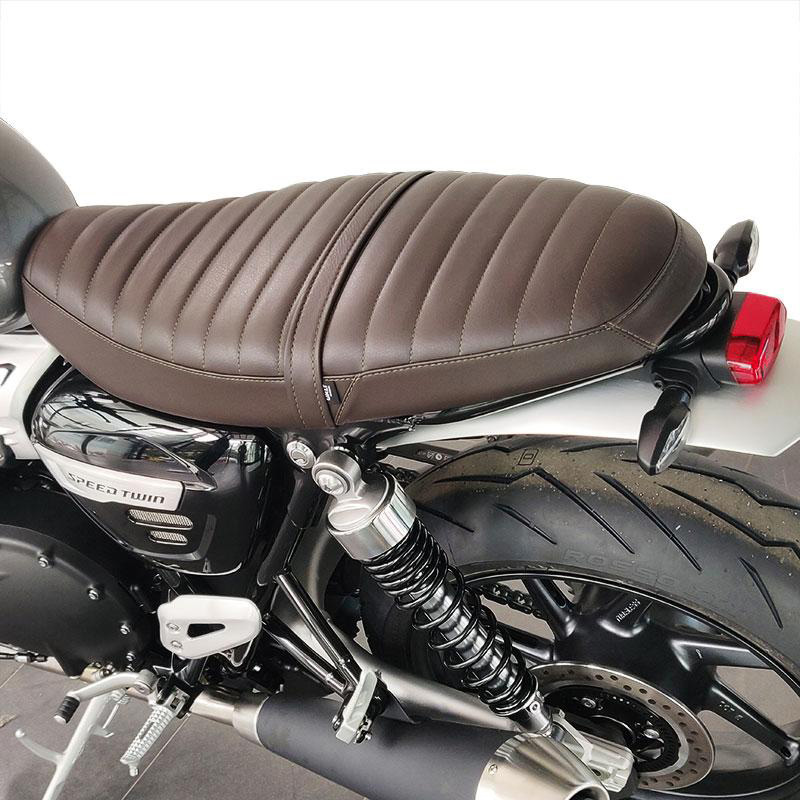 El material del asiento original no hacía justicia al aspecto de la Speed Twin y lo sustituimos por algo más "real". Hemos seleccionado las mejores curtidurías y elegido cueros de origen italiano y no tratados con pentaclorofenol. Hecho a mano y cosido con hilo de algodón. El sillín con esta funda es más cómodo gracias a la capa adicional de esponja cosida al cuero. Se suministra con tirador del mismo color y material, una correcta instalación requiere un poco de destreza, si no te apetece contacta con un tapicero.