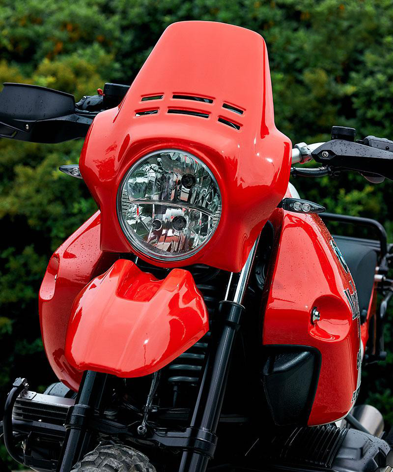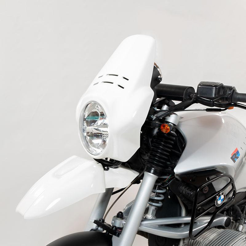 Guardabarros delantero fabricado en ABS, se ofrece en varios colores y recuerda las líneas del GS punta de los años 80.