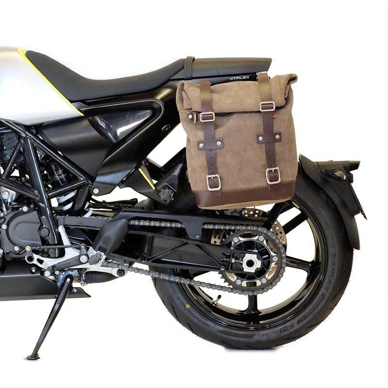 Tratado con cera que lo hace resistente al agua. Atención a los detalles más pequeños con acabados de cuero de 3 mm, simples y puros como los materiales con los que fue construido. Se adhiere rápidamente a nuestro marco de bolsa con el sistema de liberación rápida ya incluido y montado en la parte posterior de la bolsa, que está equipado con un bloqueo para bloquearlo. Puede contener una computadora portátil de 15" en el interior, está equipado con un gran bolsillo con cremallera para teléfono y documentos.