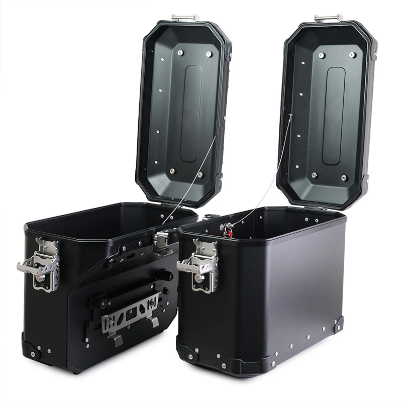 Este completo conjunto de cuadros fabricado en acero inoxidable se integra perfectamente con el resto de la bicicleta. Viene completo con kit de montaje y tornillos, no se requieren modificaciones. Se puede montar en la motocicleta en combinación con nuestros accesorios y con los accesorios originales KTM. Se pueden utilizar cómodamente con un pasajero a bordo.