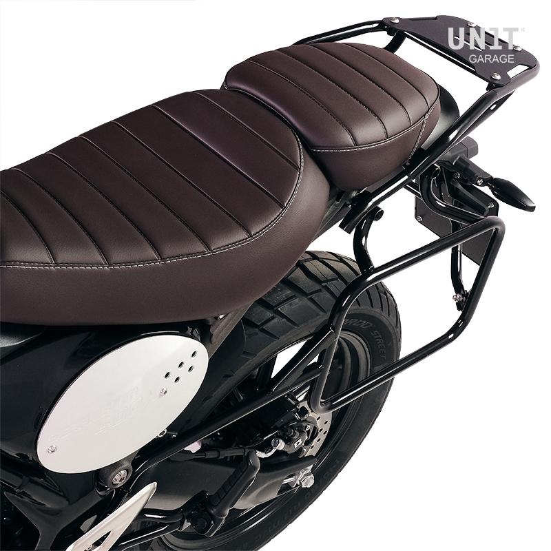 Este completo conjunto de cuadros fabricados en acero inoxidable se integra perfectamente con el resto de la bicicleta. Viene completo con kit de montaje y tornillos, no requiere modificaciones. Se puede montar en la moto en combinación con nuestros portaequipajes (código: 4203) con accesorios originales Triumph como el portaequipajes o el asa del pasajero. Se pueden utilizar cómodamente con el pasajero a bordo.