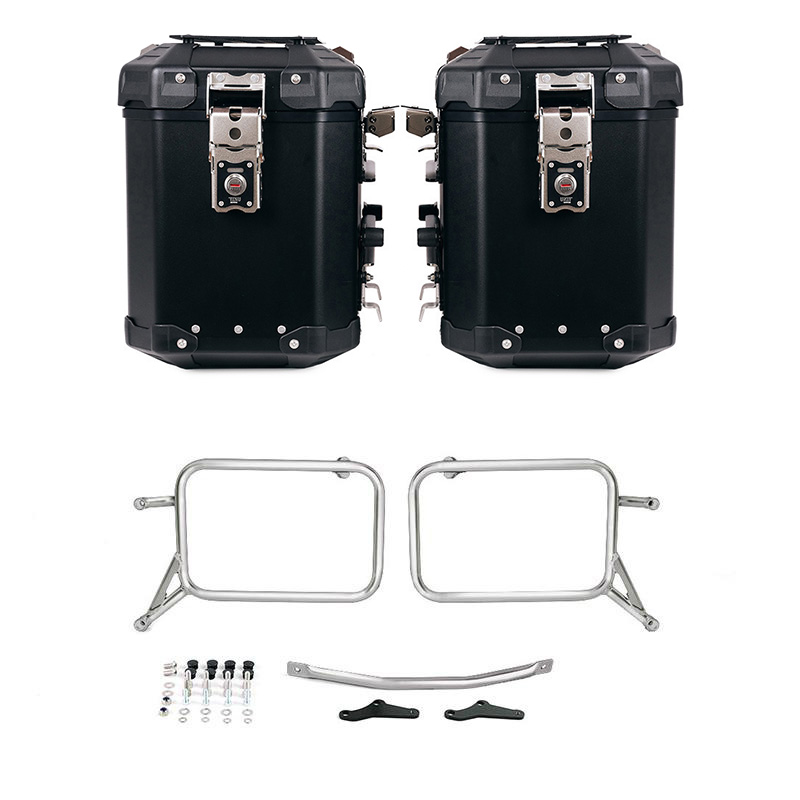 Este completo juego de marcos de acero inoxidable te permite montar las maletas de aluminio en los modelos R y GS. Se integran perfectamente con el resto de la moto. Listo para albergar nuestras bolsas de aluminio en diferentes tamaños. Se suministran completos con kit de montaje y tornillos. En el modelo GS no es necesario sustituir las estriberas del acompañante por las del modelo ADV.