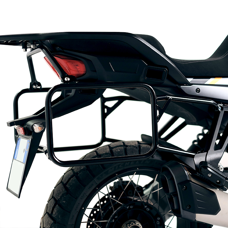 Este conjunto completo de marcos fabricados en acero inoxidable permite montar nuestras cajas Atlas Aluminio, la UG002 o la U003 en los modelos Stelvio. Se integran perfectamente con el resto de la bicicleta. Viene completo con kit de montaje y tornillos. Se puede montar fácilmente en la motocicleta en su configuración original. Se pueden utilizar cómodamente con un pasajero a bordo y son compatibles con todos nuestros accesorios.