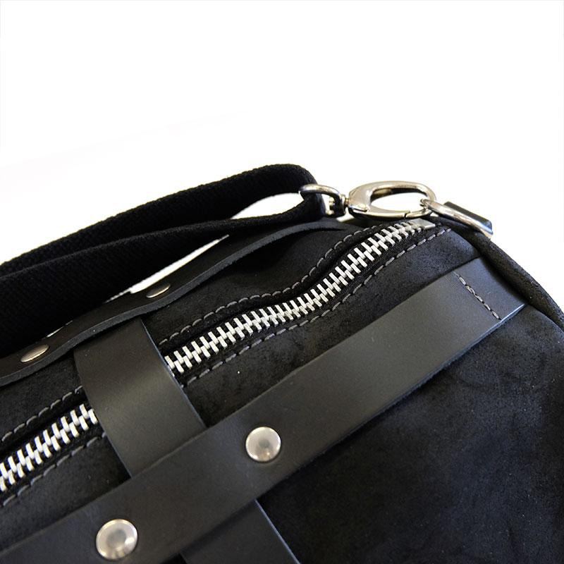 Negro azabache con ribete de cuero negro