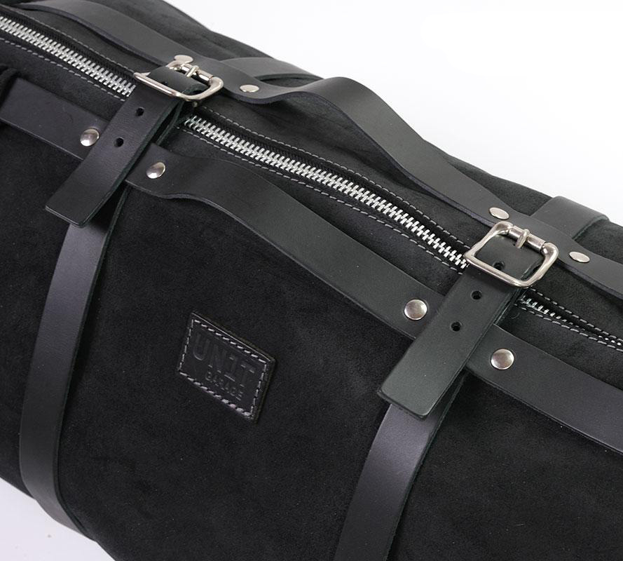 Gracias a los cinturones de cuero, es posible sujetarlo rápidamente a cualquier portaequipajes.