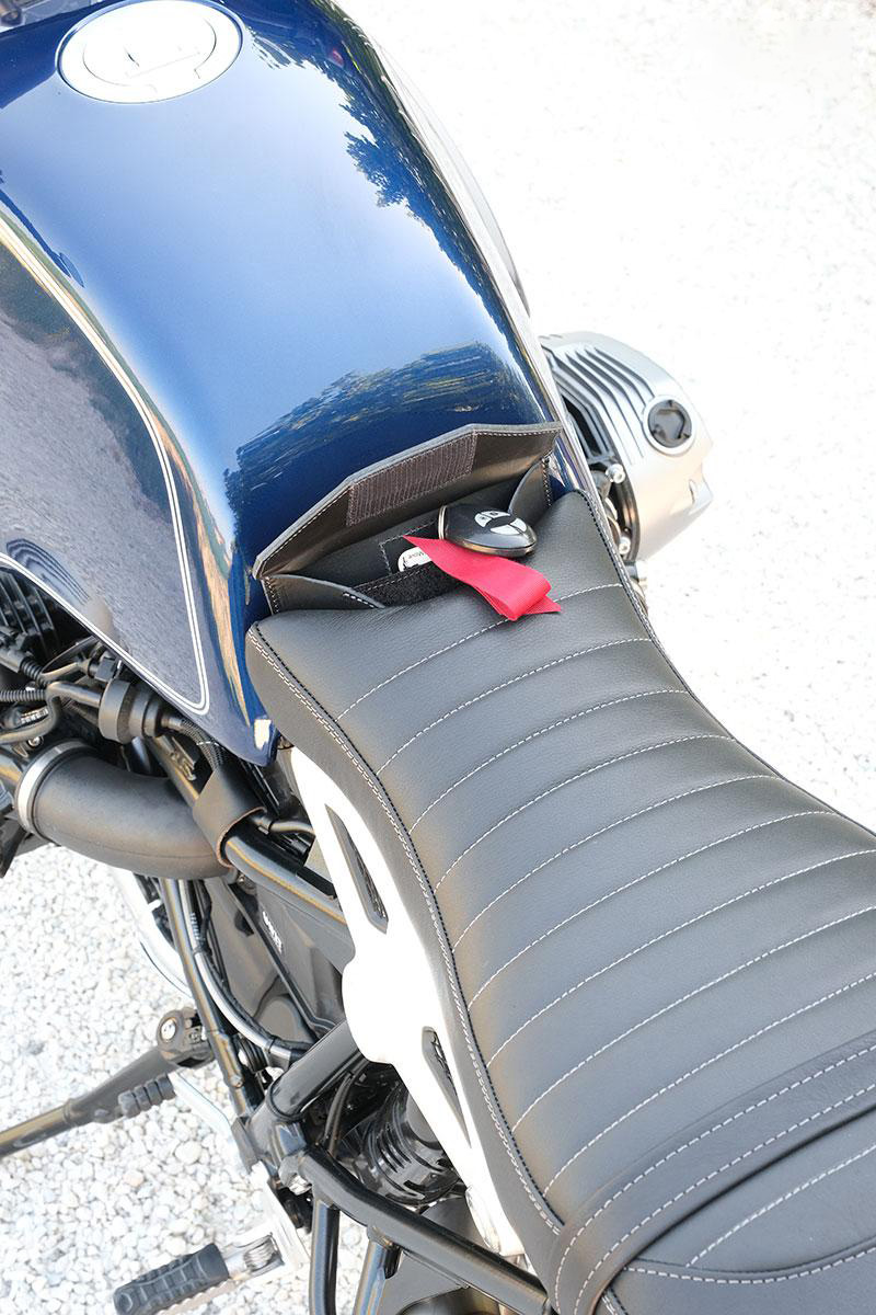 Bolsillo de almacenamiento de objetos hecho para un ajuste perfecto entre nuestros tanques para los modelos nineT y todos los asientos que se montan con el tanque original.