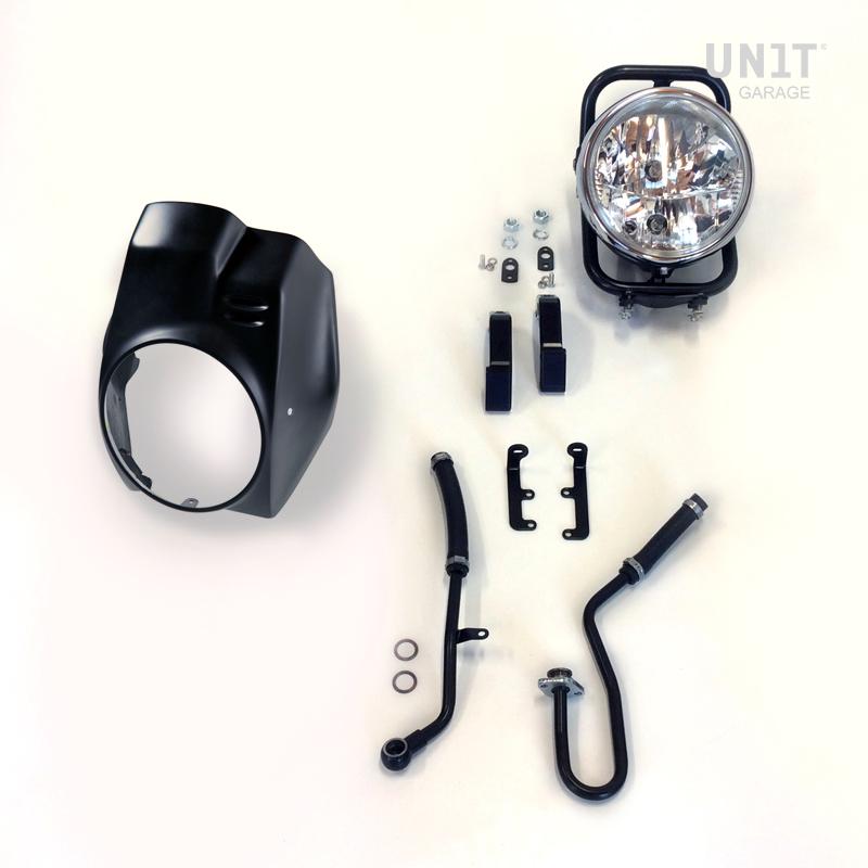 Monte dos lámparas h11 (suministradas en el kit). El grupo óptico es el del modelo R1200 R, por lo tanto, alto rendimiento en conducción nocturna. El alojamiento del faro es en lugar de nuestra producción.