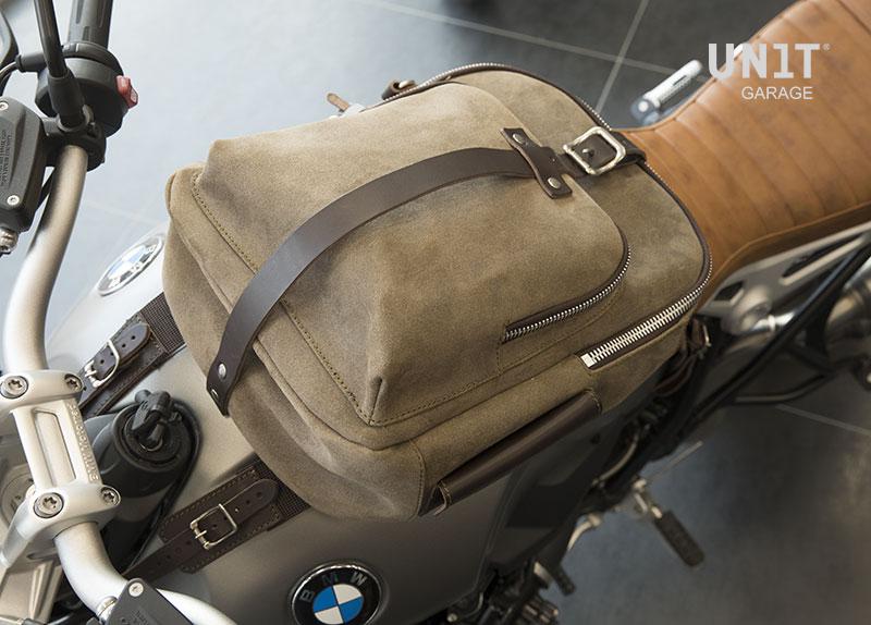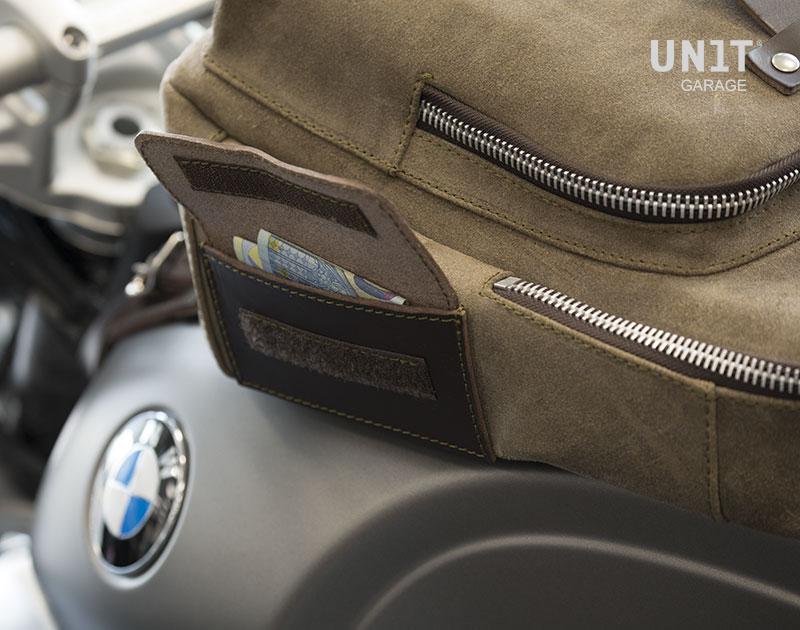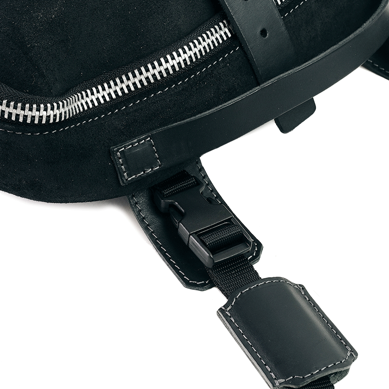 Atención a los detalles más pequeños con acabados de cuero de 3 mm, simples y puros como los materiales con los que fue construido. Se sujeta con las correas suministradas y se convierte en una mochila una vez que se retira de la bicicleta. Puede alojar una computadora portátil de 15 ", está equipada con un gran bolsillo con cremallera para teléfono y documentos.