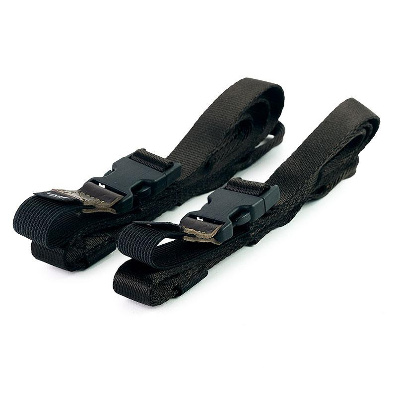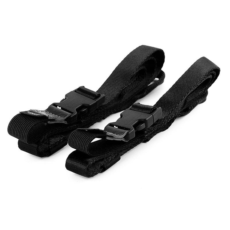 Correas ajustables ideales para asegurar equipaje o bolsos de varios tamaños. Compuesto por una parte fija de cinturón y una parte de goma extremadamente resistente, conectado a un cierre rápido que une las dos piezas y permite ajustar la longitud total. La correa no tiene ganchos ni otros detalles metálicos que puedan rayar la bicicleta.