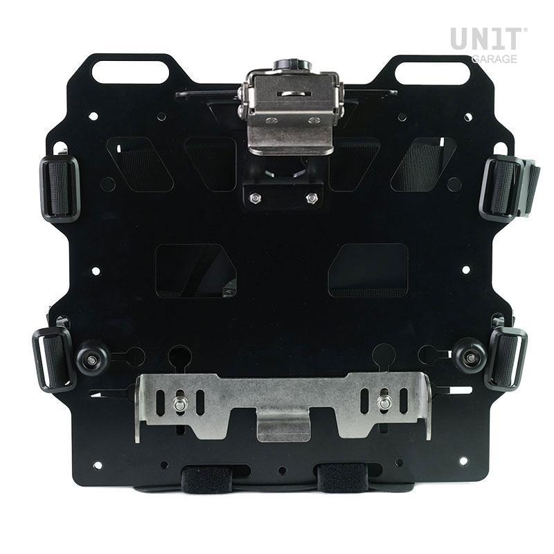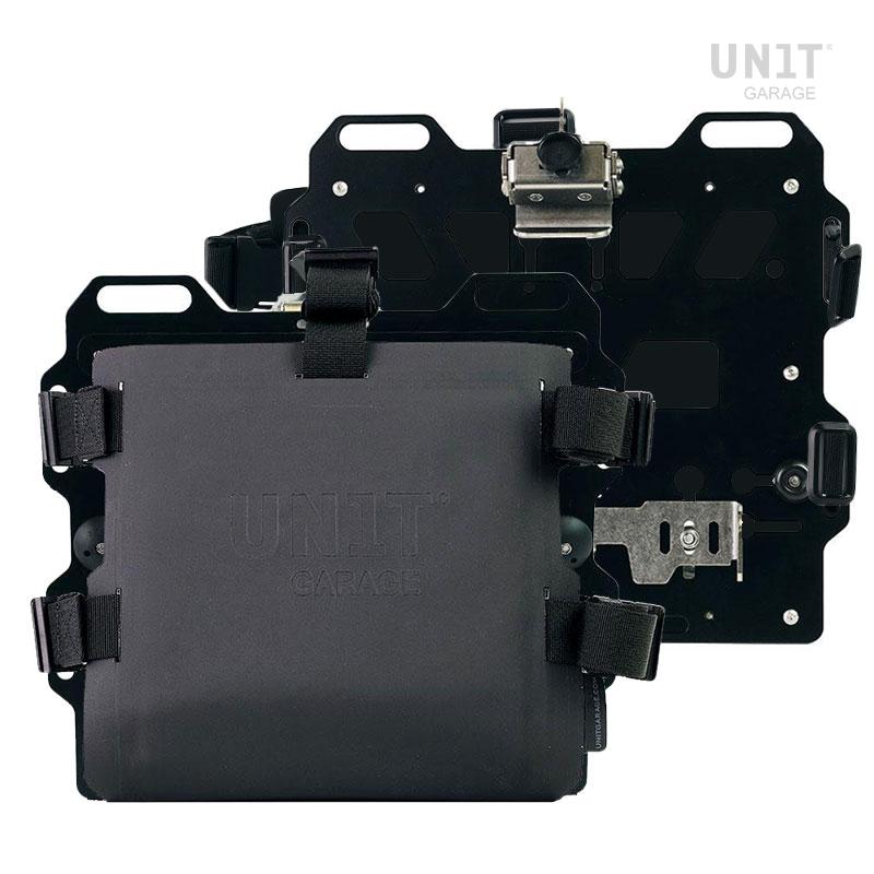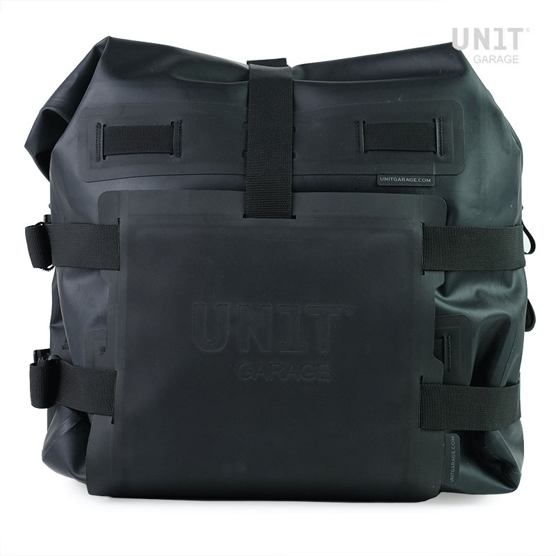 La solapa frontal, con atención a los detalles más pequeños, con acabados Hypalon, se puede ajustar mediante los cursores suministrados y se puede quitar muy rápidamente de la placa, perfecta si se combina con el código de bolsa UG006