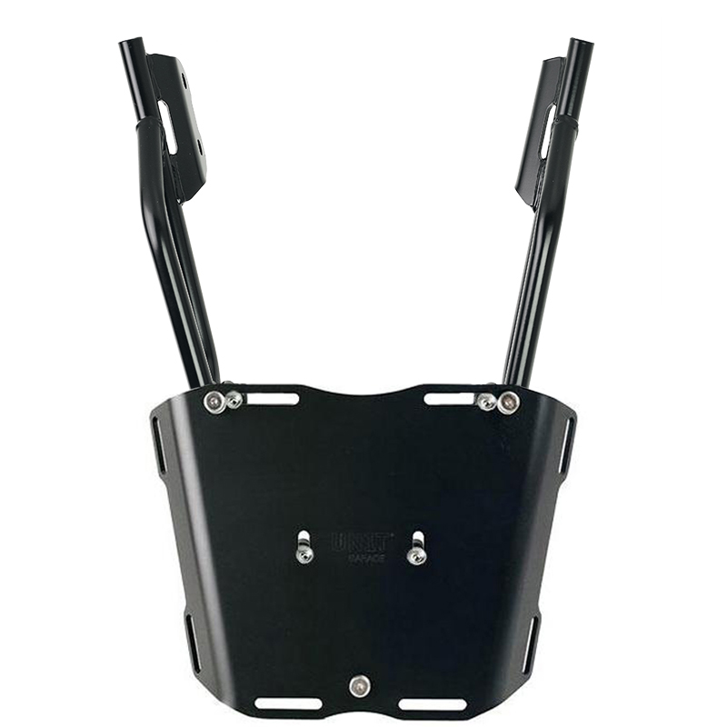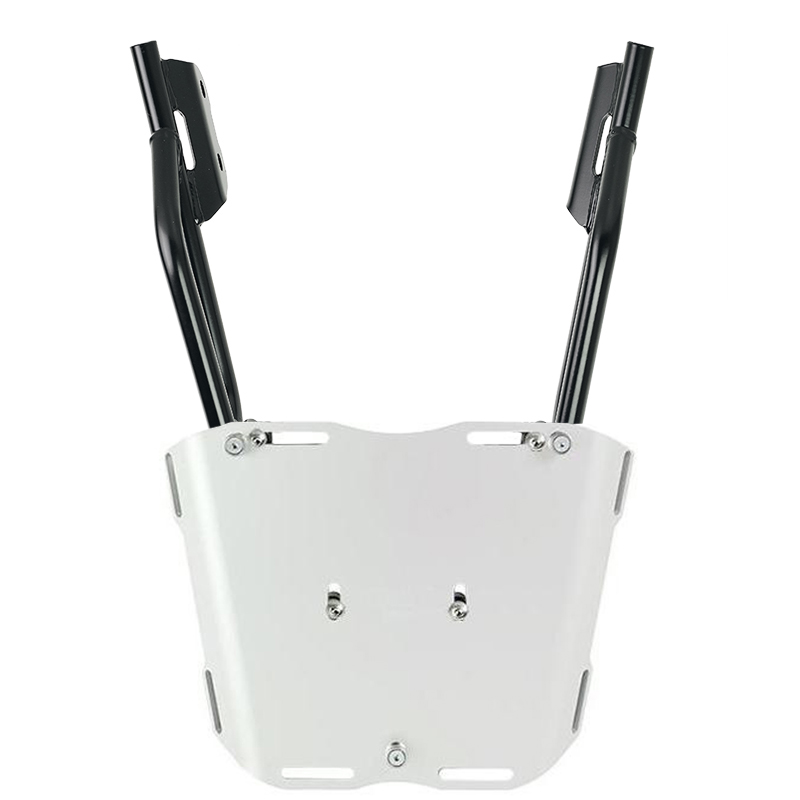 3. Portaequipajes de acero reforzado y de gran tamaño diseñado para fijar placas o topcase