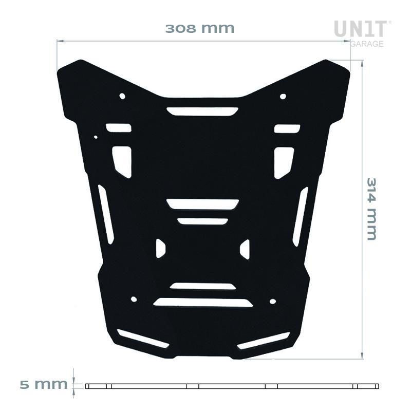 Fabricado en aluminio anodizado negro de 5 mm de espesor, permite el montaje de nuestro top case código: ATL3_BL en el portaequipajes original BMW R1300GS ADV. Completo con tornillos y espaciadores de acero inoxidable, se puede montar en pocos minutos.