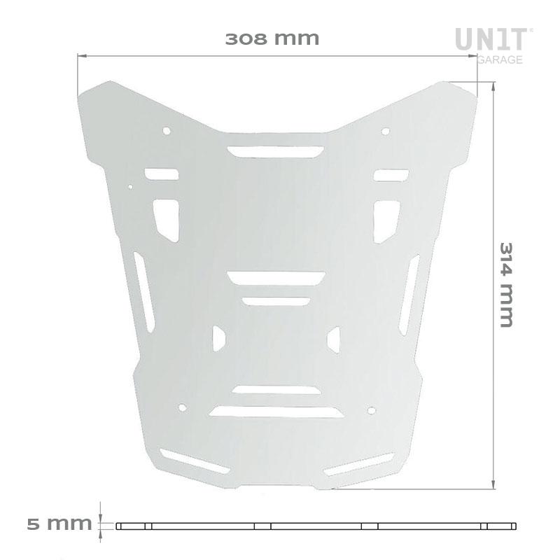 Fabricado en aluminio anodizado negro de 5 mm de espesor, permite el montaje de nuestro top case código: ATL3_BL en el portaequipajes original BMW R1300GS ADV. Completo con tornillos y espaciadores de acero inoxidable, se puede montar en pocos minutos.
