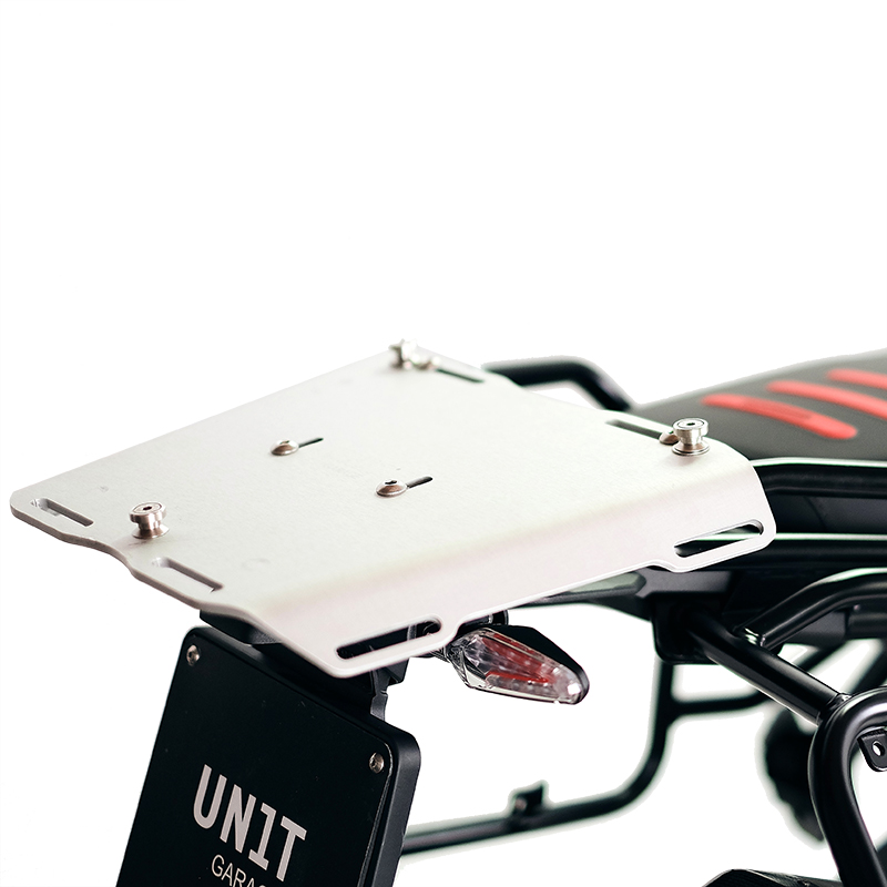 Fabricado en aluminio anodizado de 5 mm de espesor, permite el montaje de nuestro baúl superior con código ATL3 en portaequipajes de varios modelos. Este producto no incluye ningún sistema de fijación a la motocicleta, que debe adquirirse por separado, como el código A9.
