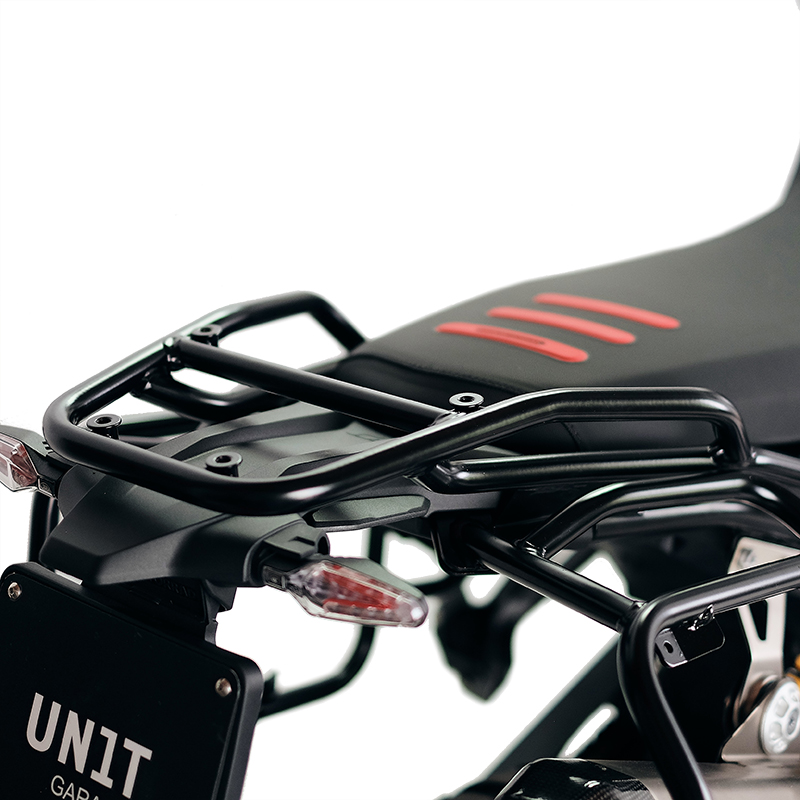Si quieres montar una maleta rígida o transportar mucho equipaje en tu BMW F900GS, ¡este portaequipajes es perfecto! Completa la parte trasera e incluye prácticas asas para el pasajero. Robusto y práctico, admite tanto la placa U108 como la placa AL3 para la maleta superior de aluminio mediante los 4 soportes preinstalados. Disponible con un acabado de polvo epoxi negro mate de alta resistencia.