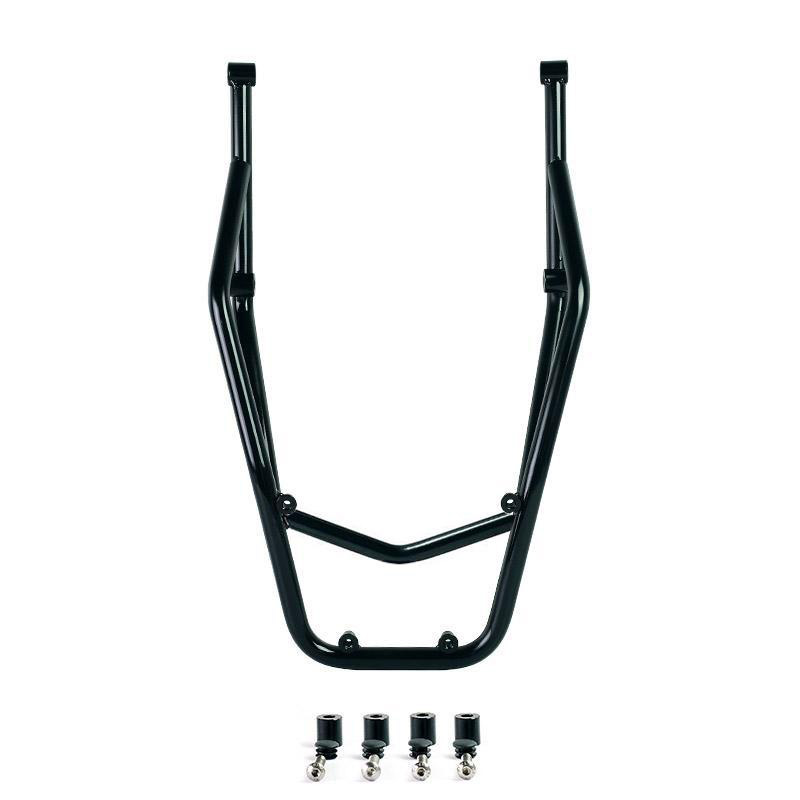 Portaequipajes fabricado en tubo de acero inoxidable con acabado en polvo epoxi negro. Completa la parte trasera y está equipado con asideros para el pasajero. Se fija de forma muy sencilla al cuadro de la moto en los 4 puntos de fijación proporcionados por Ducati. Es compatible con todos nuestros soportes para alforjas. Por lo tanto, puede montar tanto el portaequipajes como los soportes de las bolsas al mismo tiempo utilizando las fijaciones originales sin realizar ningún cambio en la bicicleta. Robusto y práctico, completa la estética de la moto.