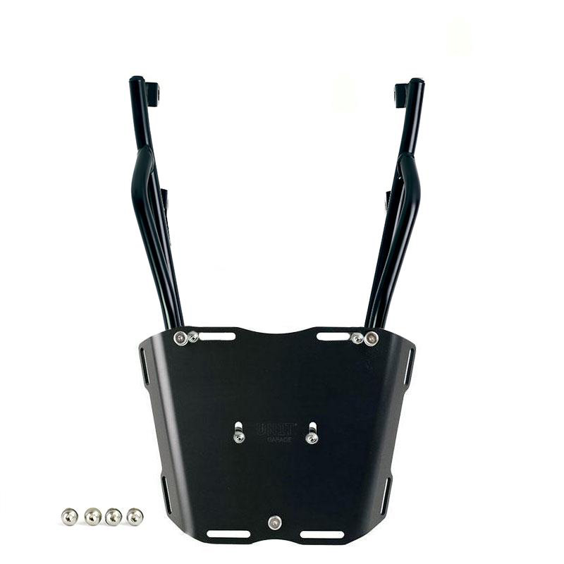 Completa la parte trasera y está equipado con cómodas asas para el pasajero. Robusto y práctico, puede alojar tanto la placa codificadora: U108 como la placa codificadora: AL5 para el top case de aluminio mediante las 4 fijaciones suministradas. Excelente también para tener más superficie de carga para bolsas blandas mediante el montaje de la placa Código: AL13 En esta versión se propone con acabado en polvo epoxi de alta resistencia en color negro mate.