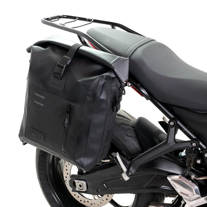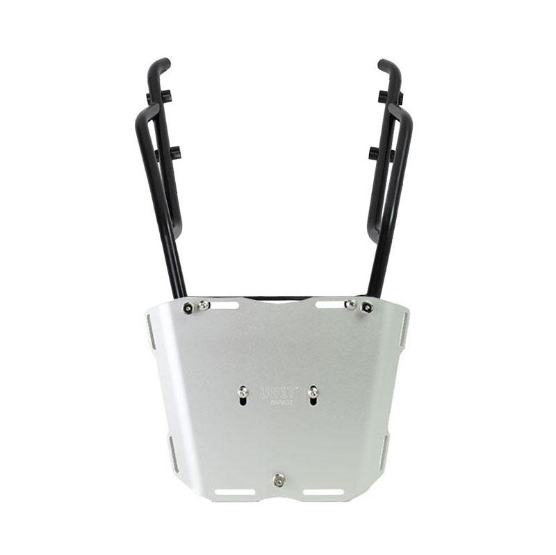 Portaequipajes fabricado en tubo de acero con acabado en polvo epoxi negro mate. Completa la parte trasera y está equipada con asas para el pasajero, se fija de forma muy sencilla a la moto original con los tornillos suministrados. Robusto y práctico, está equipado con 4 casquillos en la superficie de apoyo para la fijación de la placa AL5.