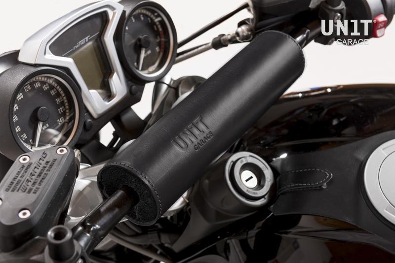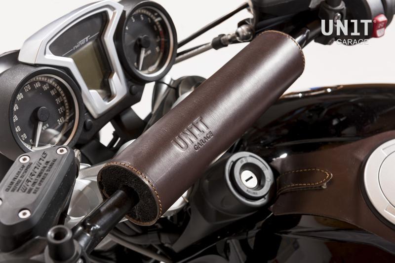Parachoques fabricado en cuero marrón, se monta muy fácilmente en cualquier travesaño del manillar y protege el rostro en caso de caída.