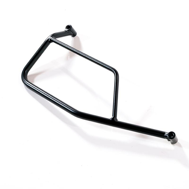 Estructura de acero tratado con un acabado en polvo epoxi negro opaco. Diseñado en el R1200R, se integra perfectamente con el resto de la bicicleta. Listo para acomodar nuestro sistema de enganche rápido, hermoso y minimalista incluso cuando la bolsa no está montada.