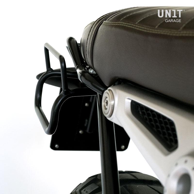 Hecho para todos los modelos NineT con bajo escape, se integra perfectamente con el resto de la bicicleta. Listo para albergar nuestro sistema de sujeción rápido, hermoso y mínimo, incluso cuando las bolsas no están montadas. Viene completo con tornillos y se puede montar fácilmente en la motocicleta en su configuración original con o sin marco de pasajero. Las dos maletas se pueden usar cómodamente con el pasajero a bordo. Nuestros accesorios están diseñados para ser compatibles entre sí, excepto en los casos excepcionales indicados en las hojas de datos del producto. El marco fue diseñado para nuestras bolsas. Unit Garage no asume ninguna responsabilidad por el uso inapropiado.