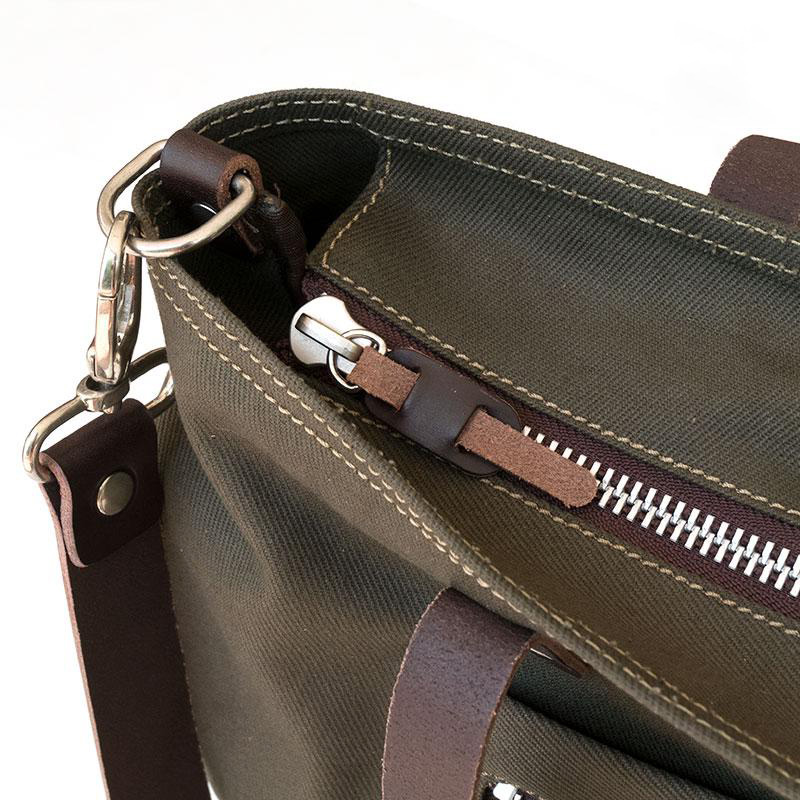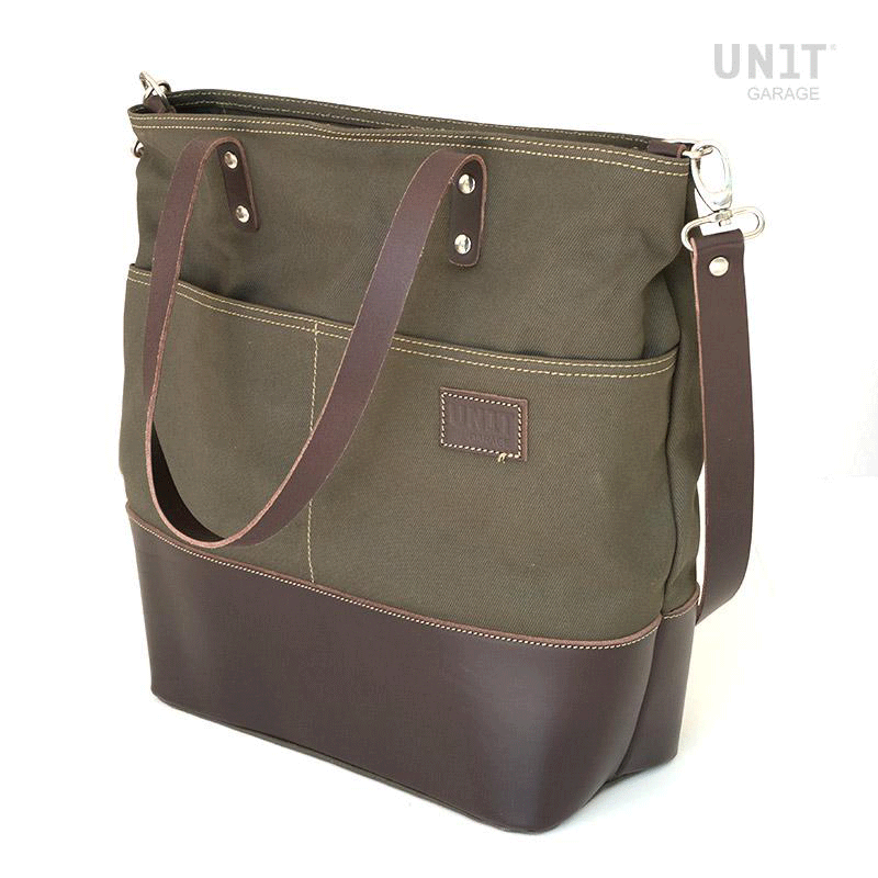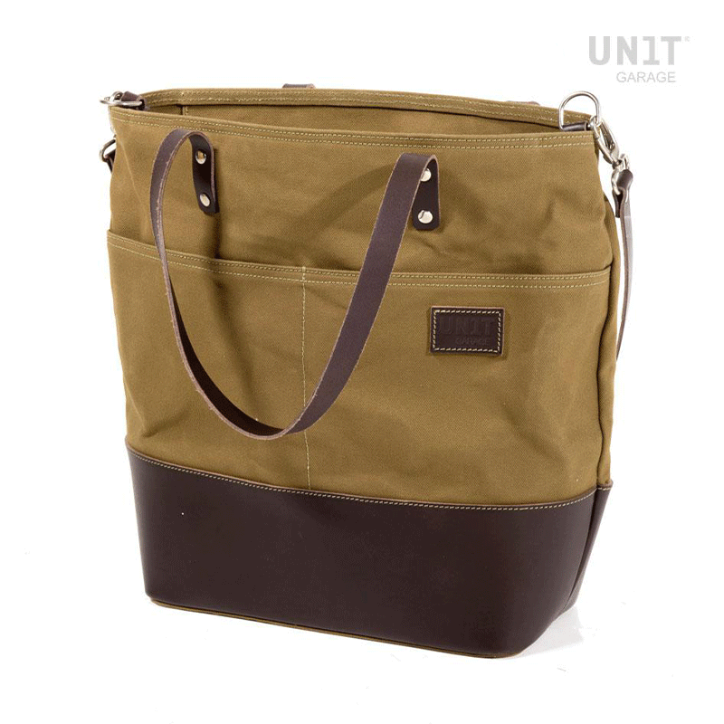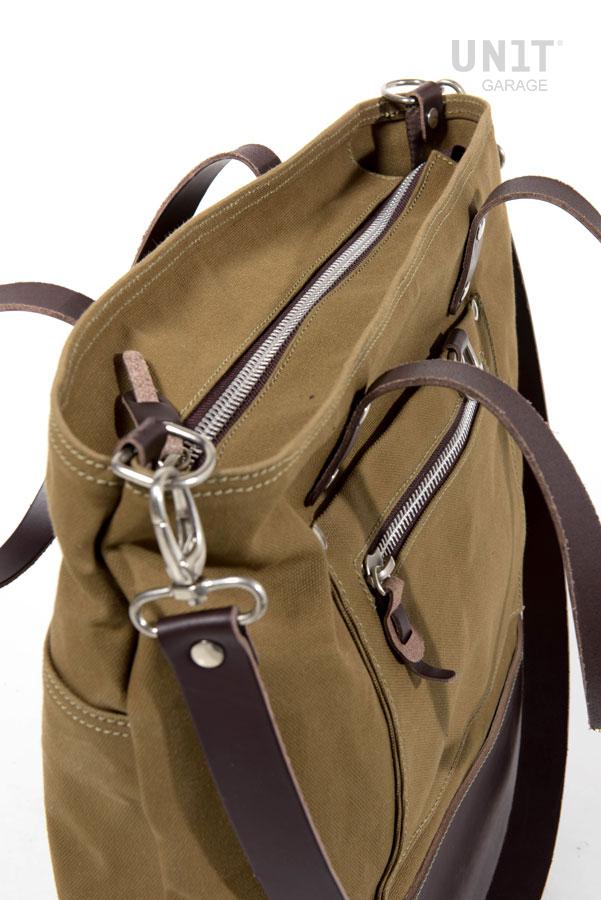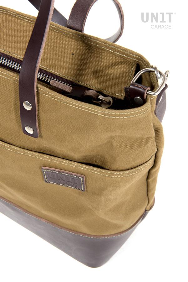 Bolso hecho a mano en Italia en resistente algodón impermeable de alta calidad; tratado con cera que lo hace resistente al agua.