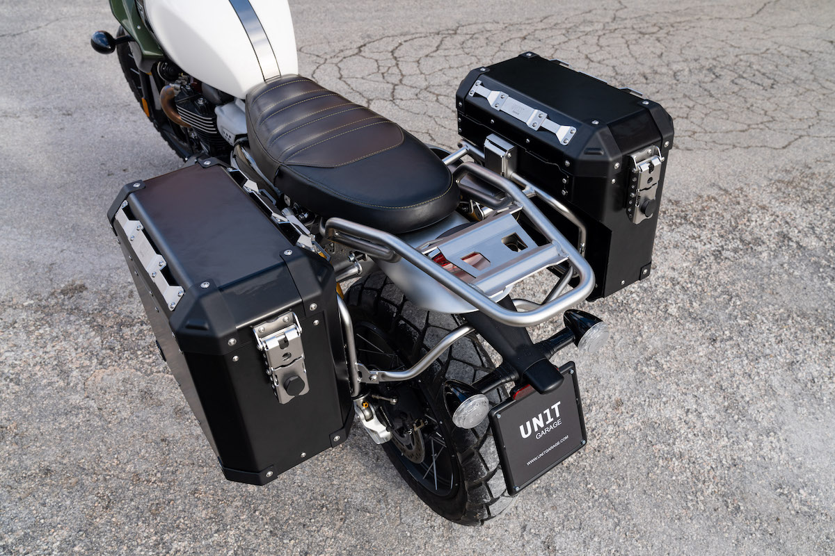 El sistema de retención de la tapa es de cuero con broches extraíbles y los cierres están diseñados para albergar un candado adicional al suministrado. El cuerpo de la bolsa está completamente forrado con un resistente neopreno de 2,5 mm capaz de absorber los golpes. Las bisagras, cerraduras y todos los detalles son en acero inoxidable electropulido, algo que no encontrarás en ningún producto similar del mercado.