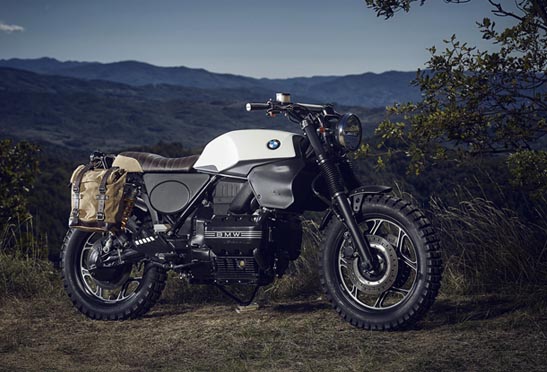 El resultado es fantástico, live view es incluso mejor que en la imagen ... limpio, simple y con accesorios dedicados: bolsa en lona encerada y cuero con marco de fijación, Ohlins debidamente calibrados y de mayor longitud, terminal de escape de titanio todo hecho ad hoc para el K75 y para el K100.