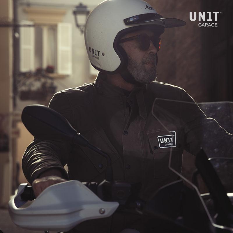Fondo blanco con logotipo de Unitgarage bordado en negro
