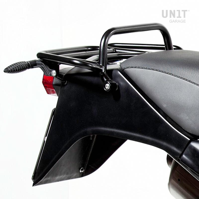 Portaequipajes fabricado en acero tratado con pinturas en polvo de alta resistencia. Se puede montar muy fácilmente utilizando los espaciadores de aluminio y los tornillos originales.