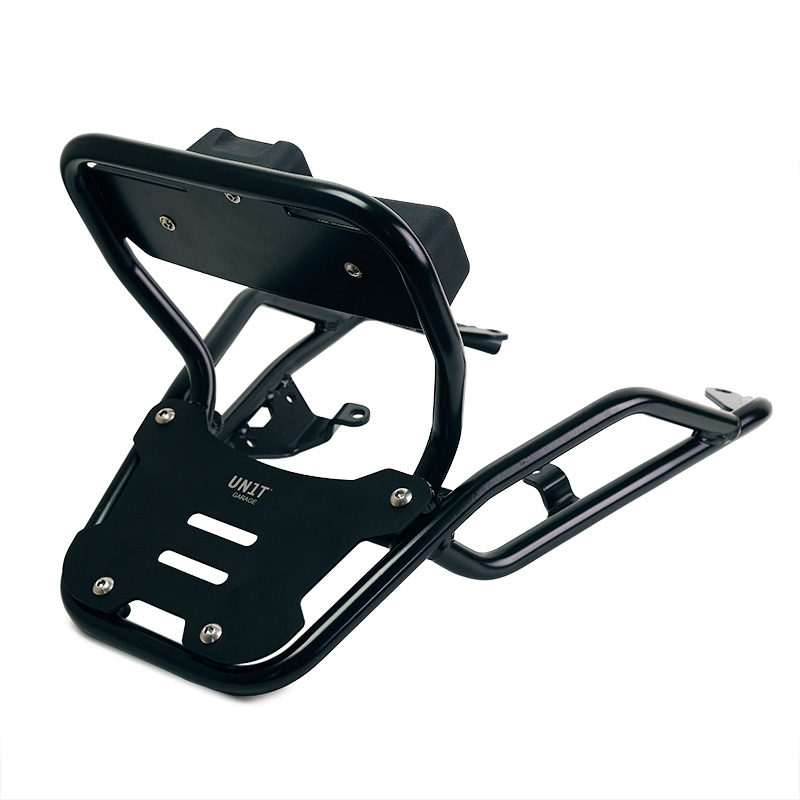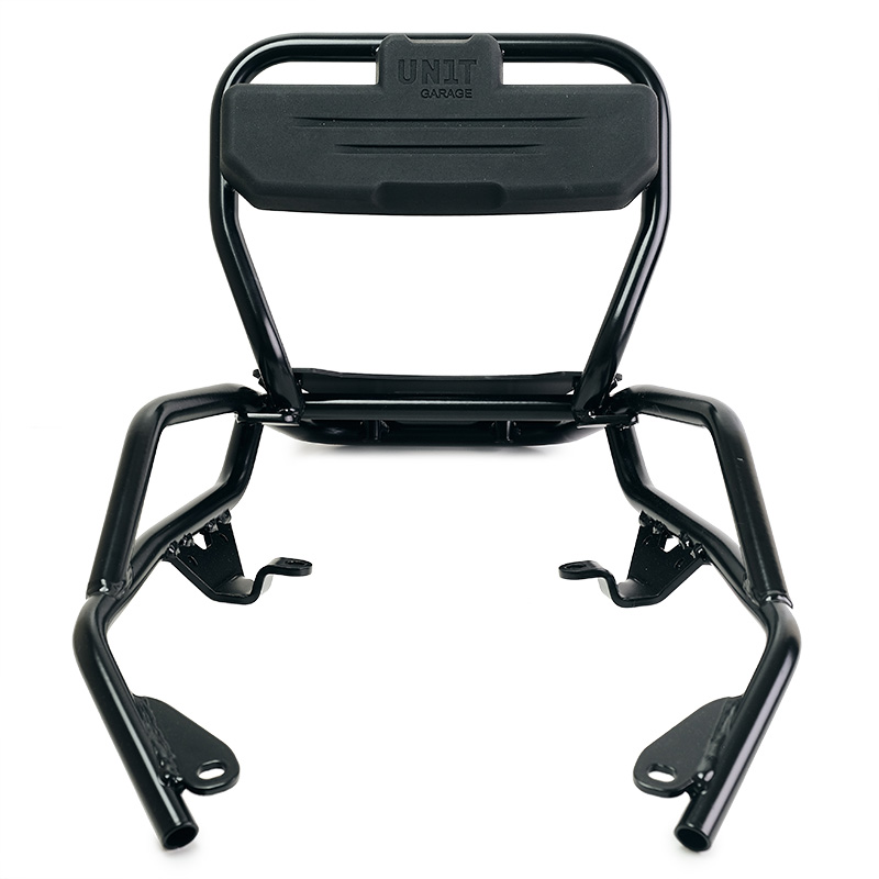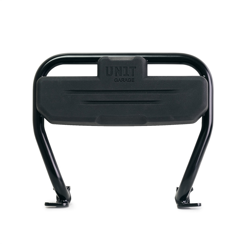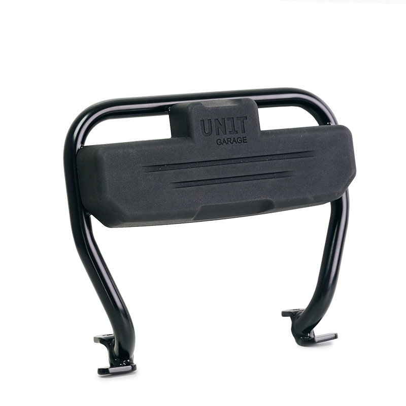 Respaldo para baúles Atlas en poliuretano negro completo con tubo de fijación, diseñado para montar en nuestros portaequipajes.