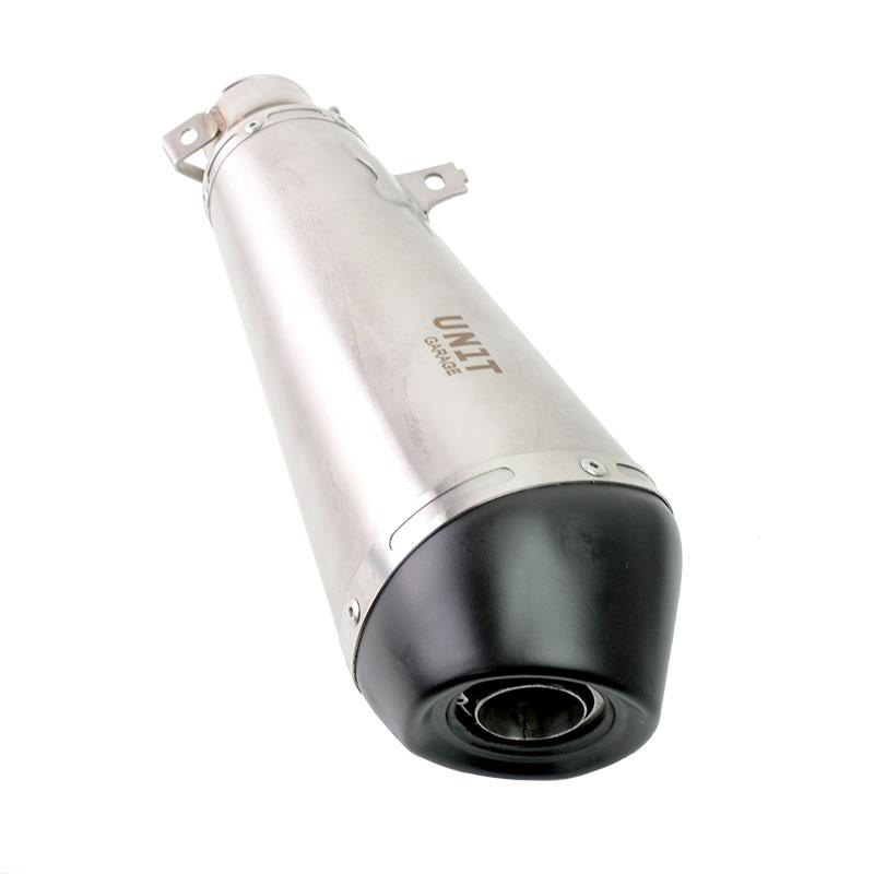 Silenciador hecho a mano en acero inoxidable con soldadura TIG, mejora la respuesta del motor, sin cambios en las asignaciones o el uso de unidades de control adicionales.