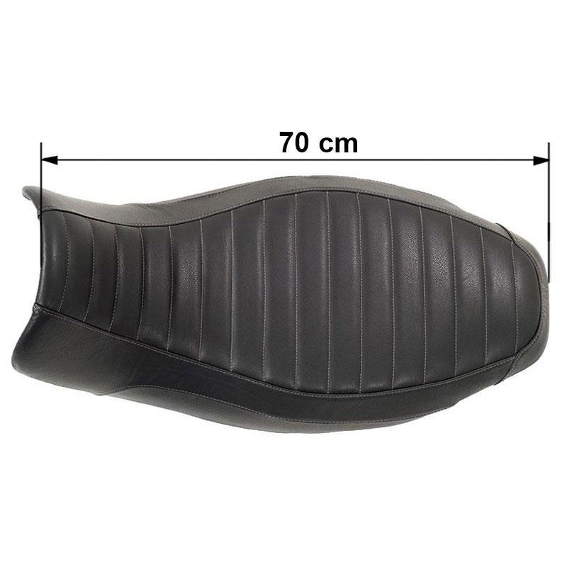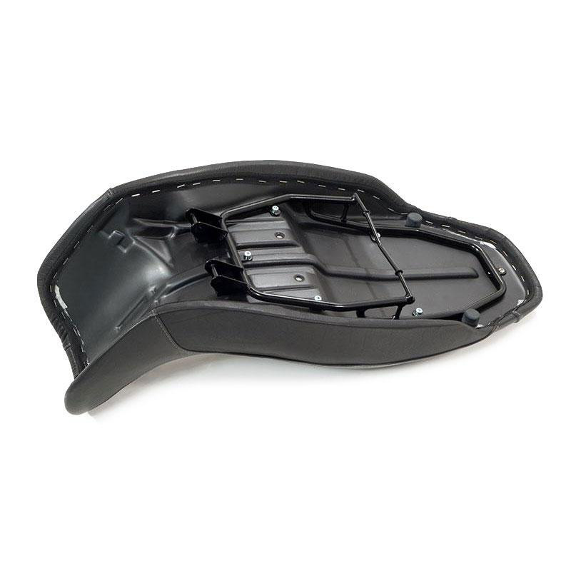 Sillín largo de nuestra realización en piel auténtica. Gracias a la forma particular de nuestro sillín, más estrecho y redondeado que el original, las piernas están menos separadas permitiendo un mejor apoyo de los pies en el suelo. Hemos seleccionado las mejores curtidurías y elegido cueros de origen italiano y no tratados con pentaclorofenol. Sillín de cuero auténtico, cosido a mano con hilo de algodón. Estos sillines están fabricados y diseñados para afrontar viajes largos. Completo con marco que permite el montaje en accesorios originales. Mantiene el candado y por tanto las mismas llaves que la moto. De esta forma puede utilizar este sillín y alternativamente los dos originales. Compatible con modelos: R850GS-R1100GS-R1150GS (NO R1150ADV)