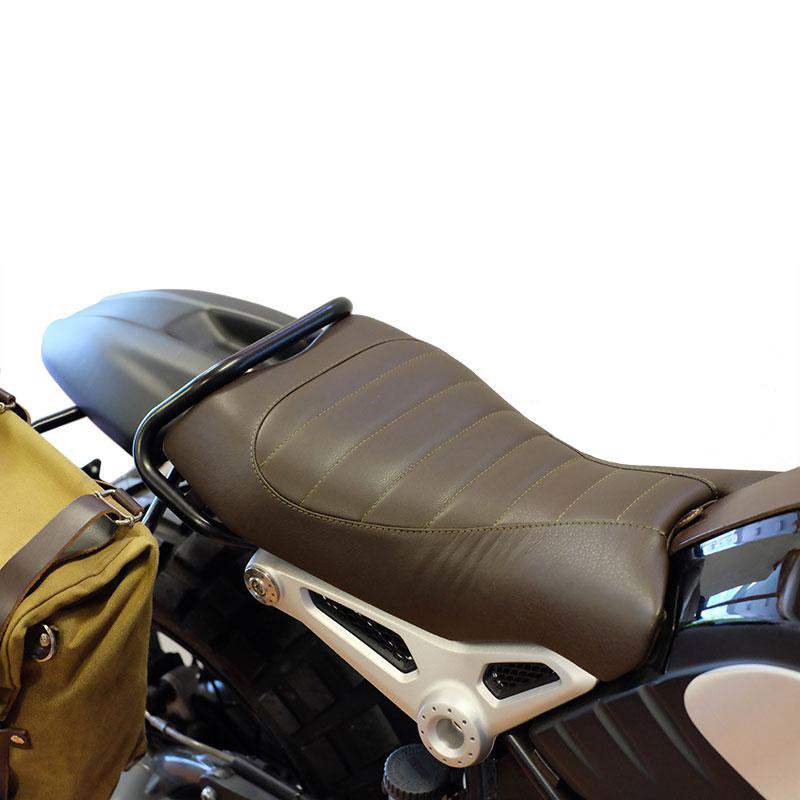Hemos seleccionado las mejores curtidurías y elegido pieles de origen italiano y no tratadas con pentaclorofenol. Sillín monoplaza fabricado por nosotros con cosidos hechos a mano con hilo de algodón. Mucho más cómodo y minimalista, se puede montar sin ninguna modificación en la moto ya que se engancha y fija en la misma posición que el original. Permite el montaje de nuestro guardabarros trasero código: 1614 y la manilla correspondiente código: 1616. El resultado es fantástico pero también muy limpio y elegante.