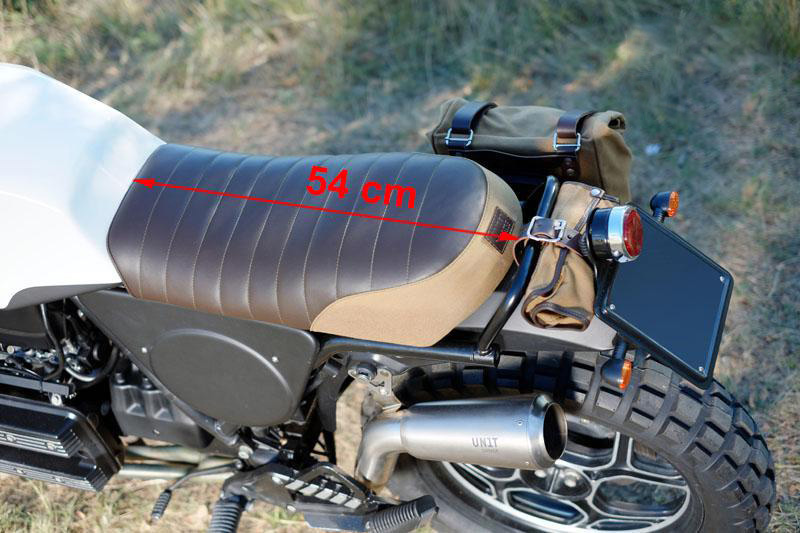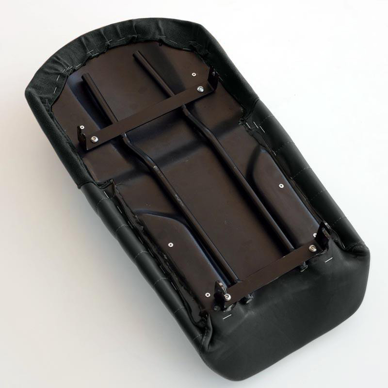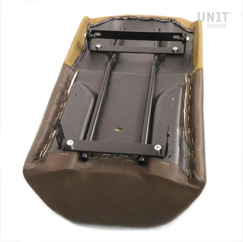 Sillín fabricado en piel auténtica de primera calidad con inserciones de lona hidrófuga y costuras hechas a mano con hilo de algodón. Realizado con fondo de ABS, muy cómodo, se suministracompleto con marco de fijación en los modelos K75 o K100.