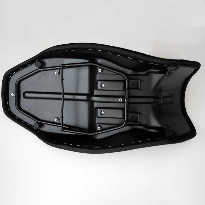 Sillín largo de nuestra producción. Gracias a la forma particular de nuestro sillín, más estrecho y redondeado que el original, las piernas están menos separadas permitiendo un mejor apoyo de los pies en el suelo. Sillín fabricado en piel sintética de alta calidad, cosido a mano con hilo de algodón.