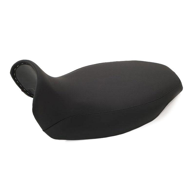 Sillín largo de nuestra producción. Gracias a la forma particular de nuestro sillín, más estrecho y redondeado que el original, las piernas están menos separadas permitiendo un mejor apoyo de los pies en el suelo. Sillín fabricado en piel sintética de alta calidad, cosido a mano con hilo de algodón.